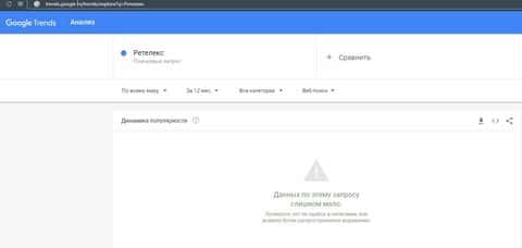 По поводу запросов бренда "Ретелекс" в поисковой системе Гугл сказать нечего, так как данный бренд не был запрошен ни разу.