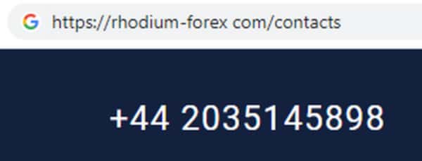 Мошенники Rhodium Forex на своем дырявом сайте указали номер контактного телефона, с которого навязчиво названивают потенциальным жертвам: