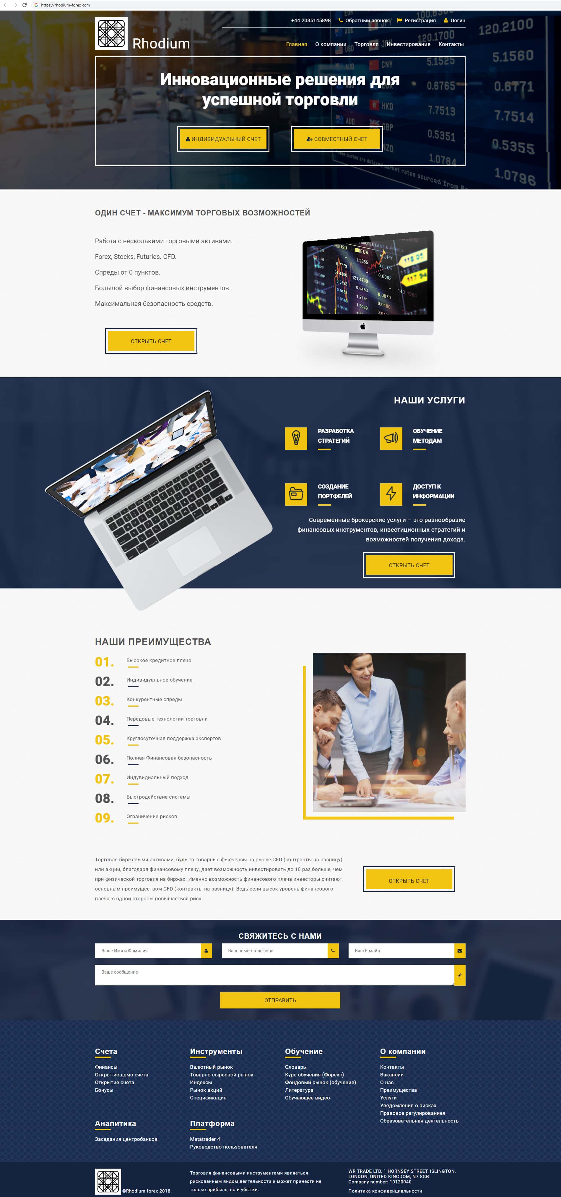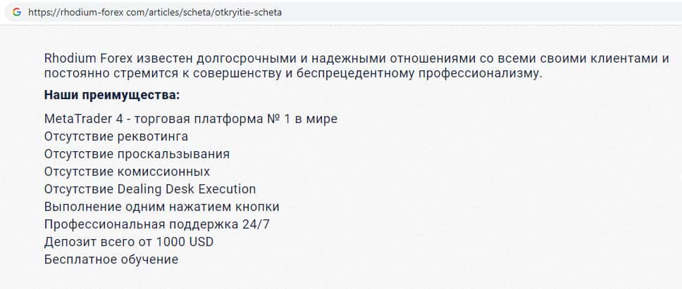 - Обзор главной страницы мошеннической организации Рходиум Форекс