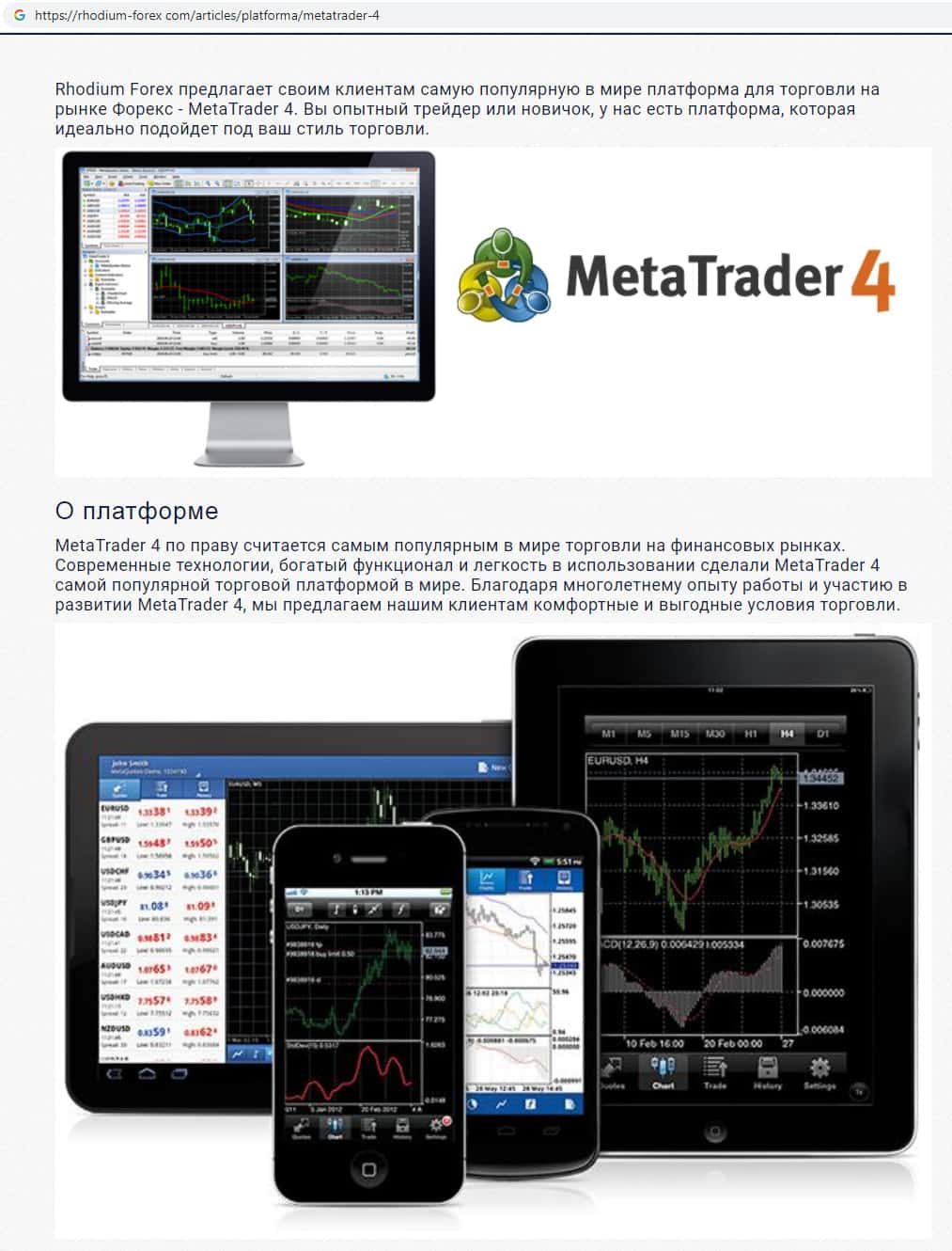 Мошенники Рходиум Форекс предлагают торговать на торговой платформе Мета Трейдер 4, которое разработано компанией Мета Куес для обмана на деньги.