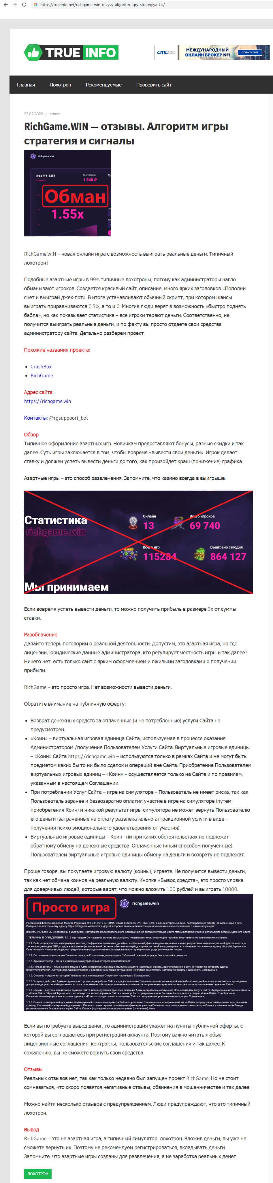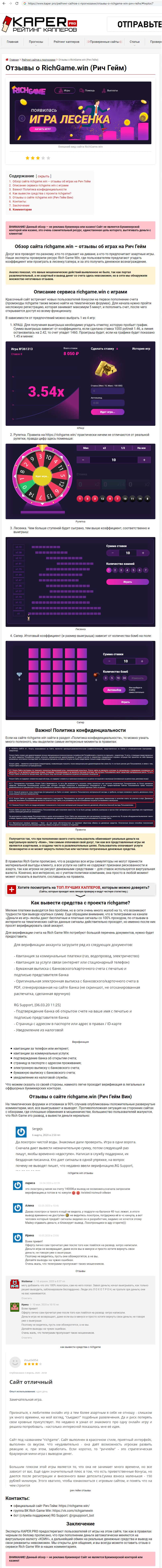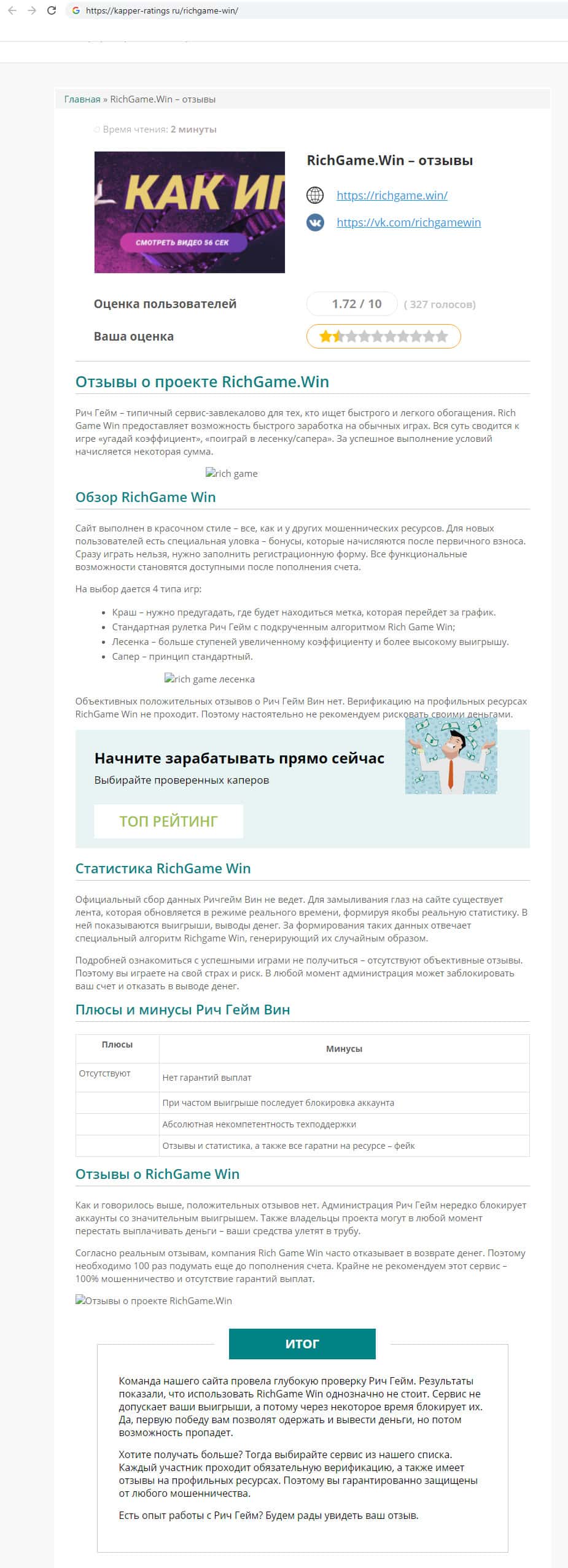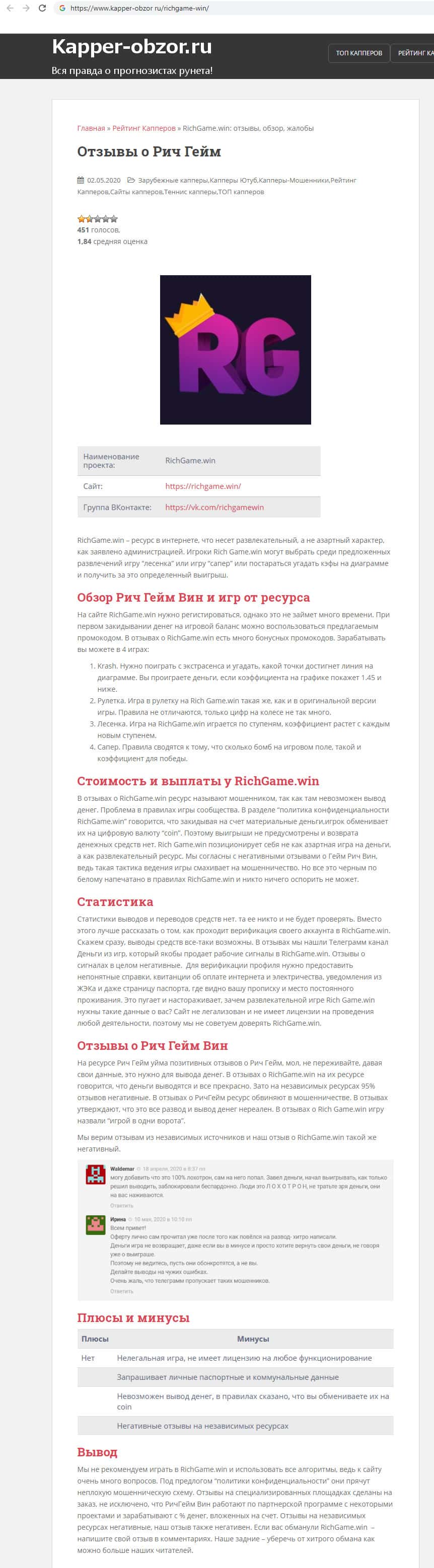 kapper-obzor ru - сайт с информацией о мошенниках RichGame Win