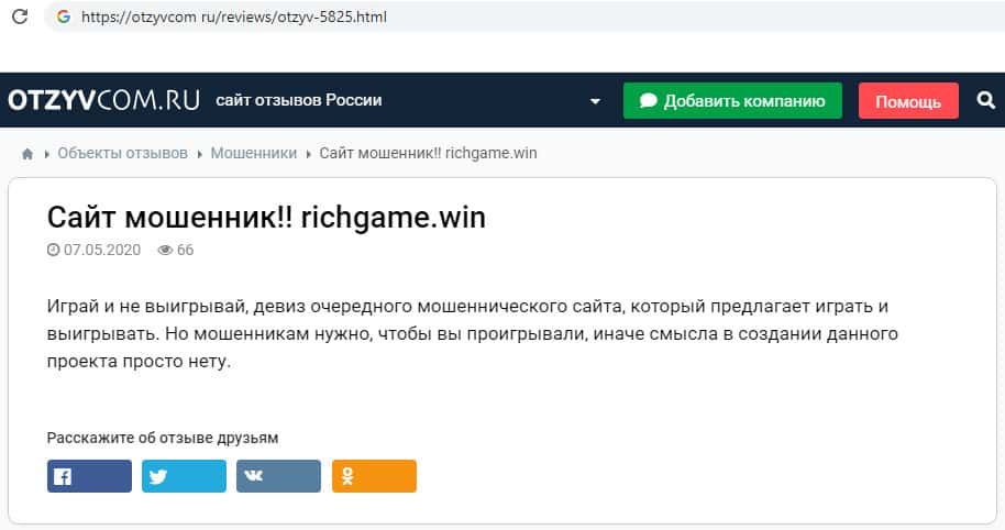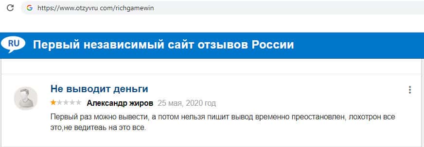 otzyvru com - отзывы о аферистах RichGame Win Рич Гейм