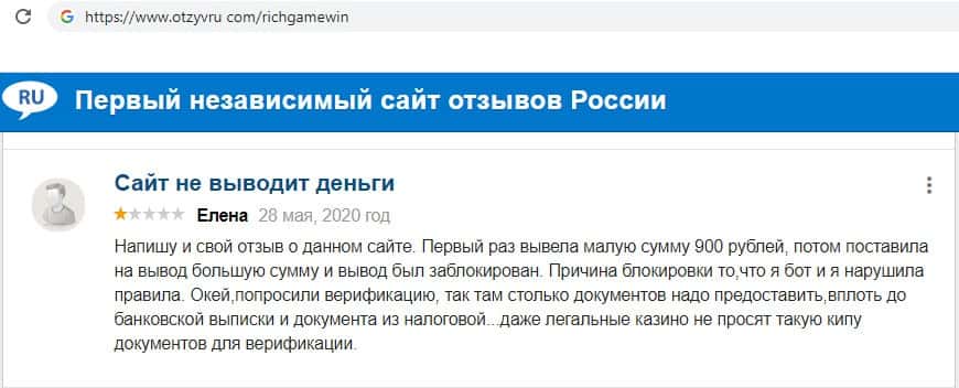 - Отзывы интернет - пользователей о конторе аферистов Рич Гейм