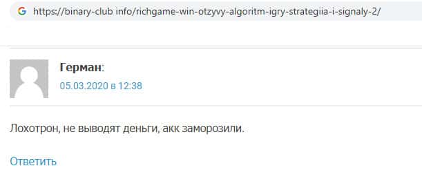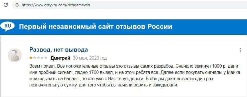 otzyvcom ru - информация о финансовых разводилах RichGame Win