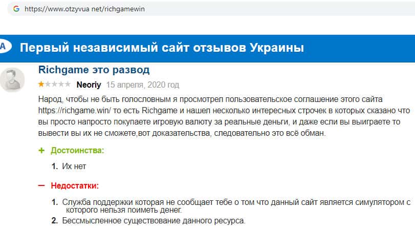 otzyvua net - отзывы о проекте махинаторов Рич Гейм
