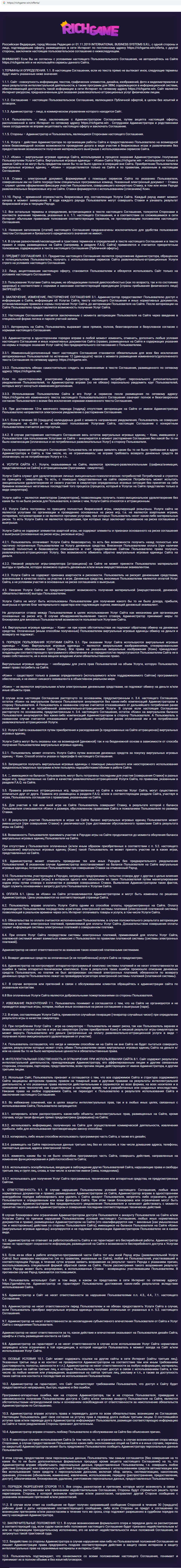 Мы предоставляем полное пользовательское соглашение компании аферистов Рич Гейм, для ознакомления со всеми пунктами, в которых скрыта мошенническая деятельность компании.