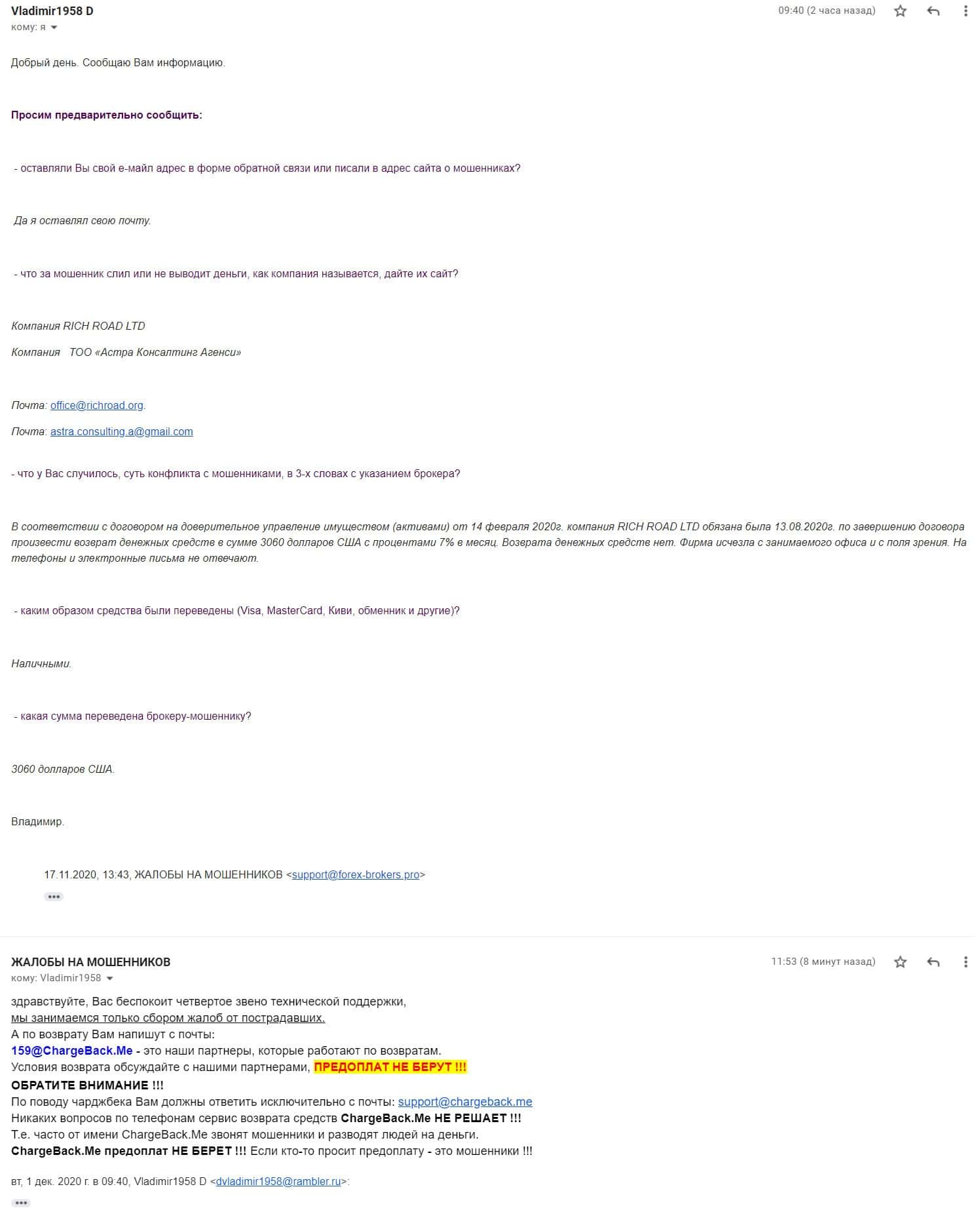Ниже предлагаем увидеть скрин письма с жалобой на мошенническую организацию Рич Роад.