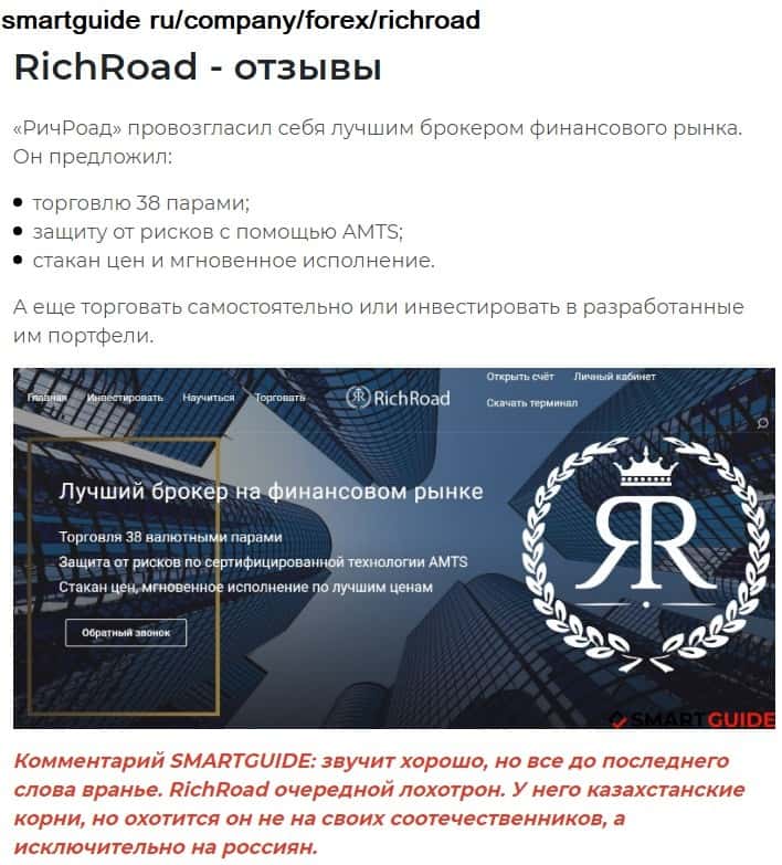 Мнения о работе лохотрона Рич Роад на разных интернет-ресурсах