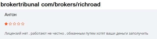Опытный пользователь подмечает тот факт, что жулики Рич Роад работают без лицензии, а значит фактически незаконно. С ними нельзя иметь дел после этого.