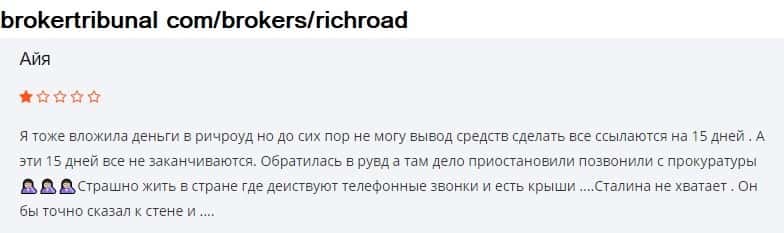 Жулики Рич Роад при выводе ссылаются на то, что вывод денег у них занимает 15 дней, только вот не говорят, какие именно 15 дней это будут.