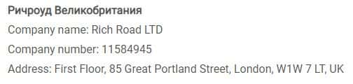 - RichRoad Ltd - юридическое лицо мошенников Рич Роад