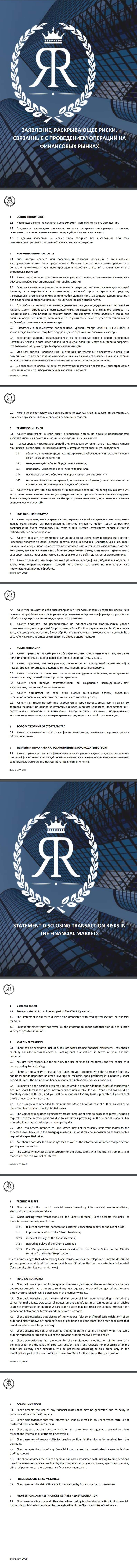 В качестве договора у жуликов RichRoad Org выступает уведомление о рисках, которым они и регулируют свои взаимоотношения с клиентом.