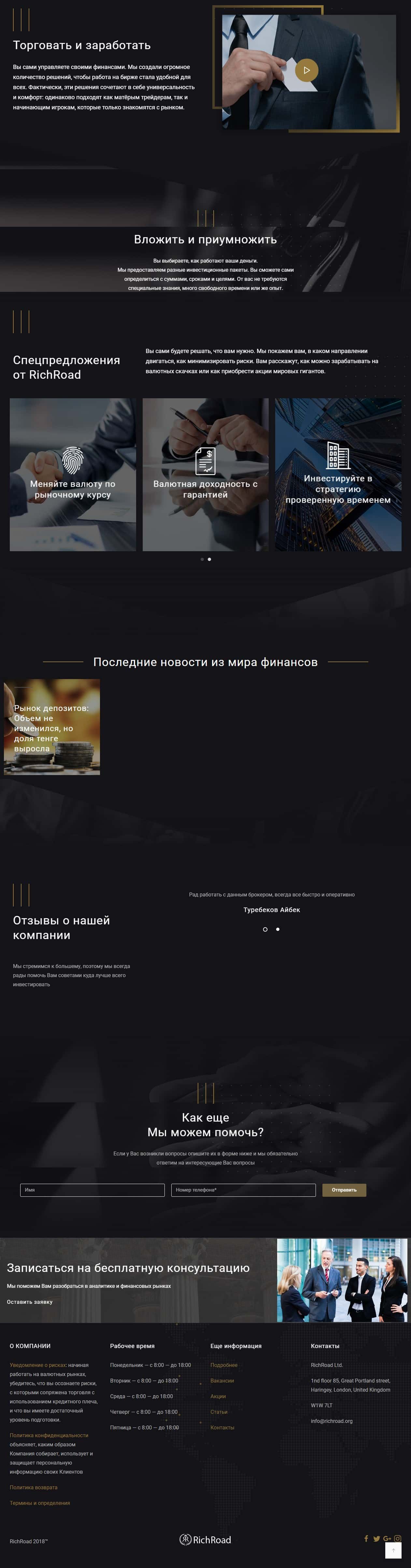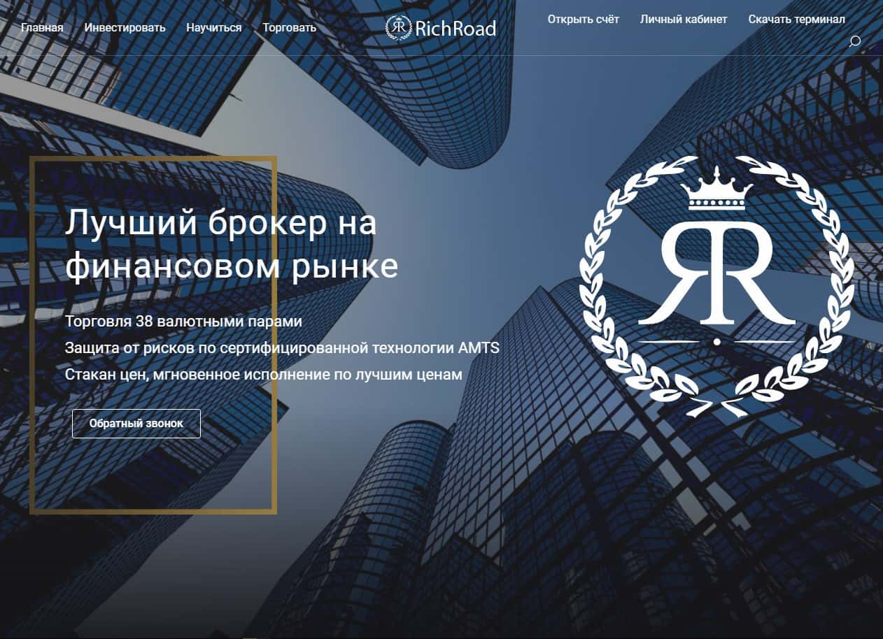 Главная страница сайта мошеннического проекта Рич Роад выглядит типично для таких лохотронов: посредственный дизайн и минимум полезной информации для клиента.