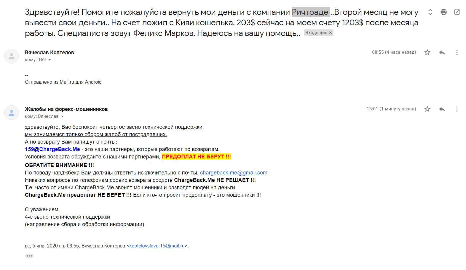 Жалоба на аферистов РичТрейд от клиента, утратившего пару сотен $