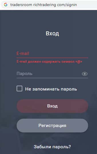 Ваши личные данные на сайте скам-конторы Рич Трейд Ринг никак не защищены, поскольку для входа в кабинет необходимо указать только адрес электронной почты и пароль, которые очень легко рассекретить. Ваши личные данные для входа в кабинет всегда хранятся на сайте жуликов Record Invest, которые могут сами слить Ваши денежные средства.