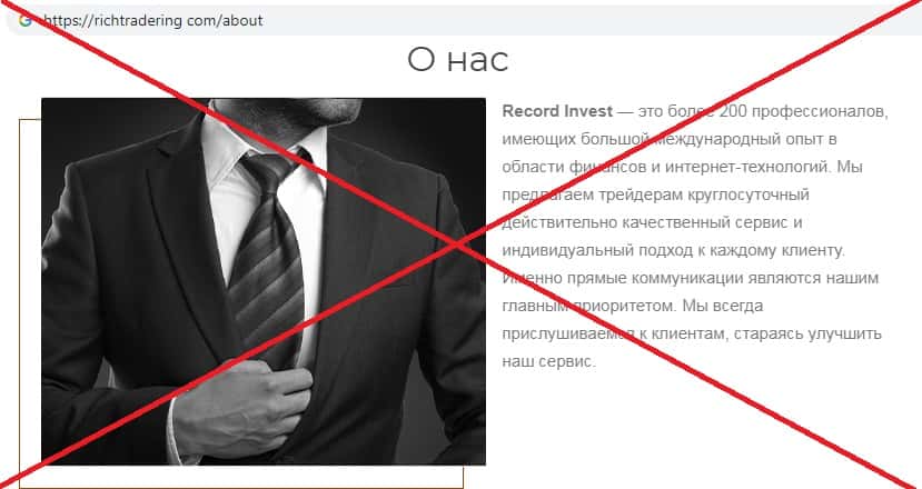 Мы не нашли какой-либо информации о руководстве конторы Рич Трейд Ринг. Возможно это произошло, потому что мошенники решили оставаться в тени и не разглашать какую-либо информацию о себе. Исходя из этого можно сделать вывод о том, что доверять скам-организации RichTradeRing или Рекорд Инвест не стоит !!!