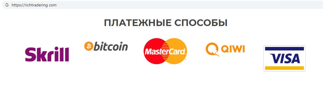 Для перевода денежных средств аферисты Рич Трейд Ринг предоставляют на своем официальном сайте множество платежных систем, якобы предоставляя выбор клиенту каким способом можно пополнить торговый счет. Связавшись с конторой Рекорд Инвест Вы должны понимать, что подобные организации не возвращают деньги людям.