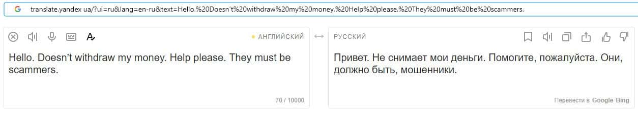 Далее предлагаем ознакомиться с переводом пользовательского отзыва на translate yandex ua об аферистах Ричие Бит на русский язык.