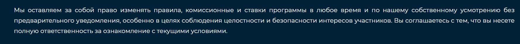 Согласно тому, что аферисты пишут в соглашении, скам-компания Richie Bit не несет никакой ответственности за не полученную прибыль клиентом, а так же за возможные убытки.