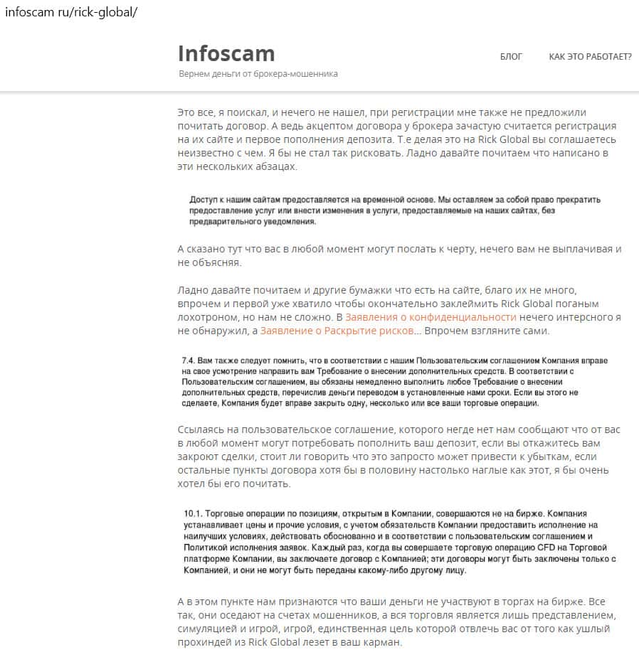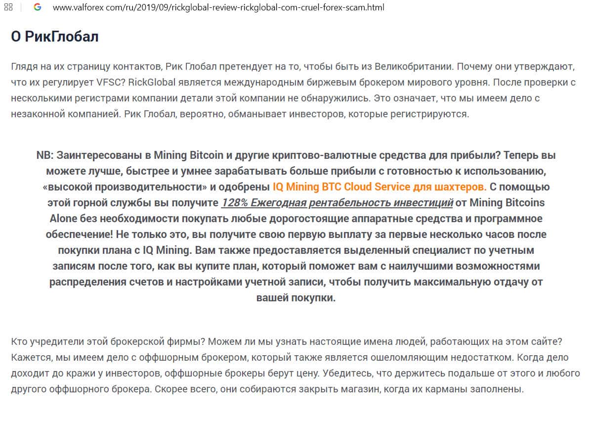 - Мнение автора статьи о мошенниках из Рик Глобал
