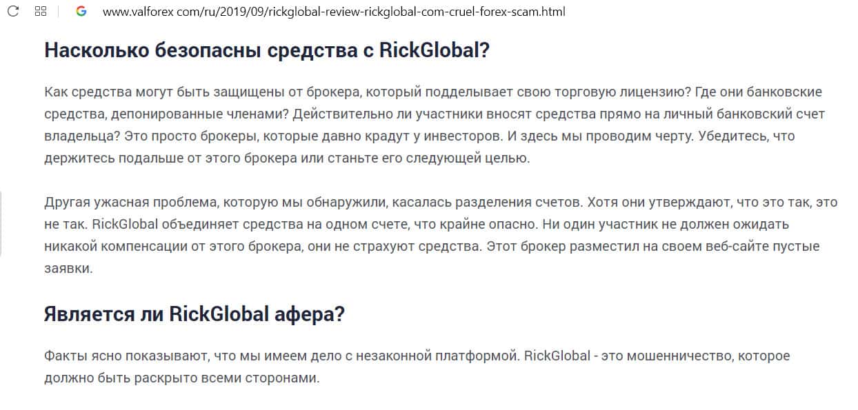 Почему сайт valforex com назвал проект Рик Глобал жестокой аферой форекс?