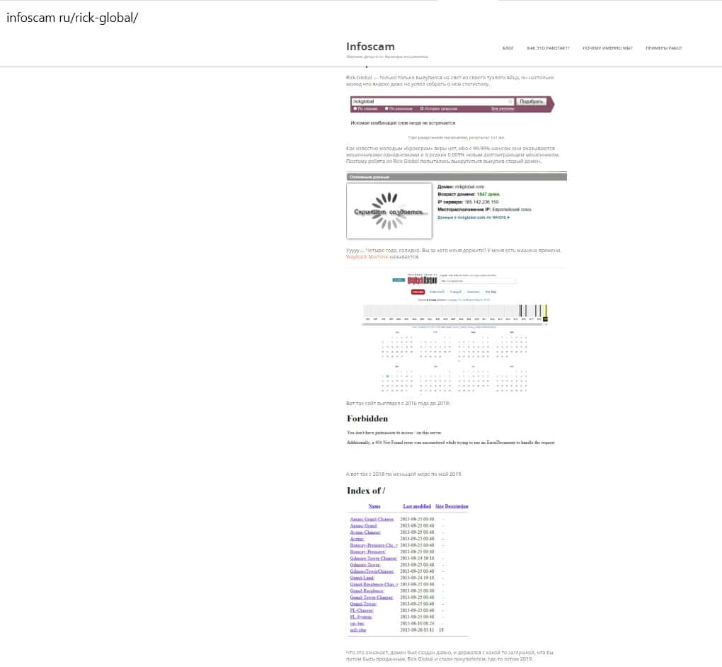 Рик Глобал находится в черном списке у многих серьезных аналитиков, эта контора обманывает клиентов с самого начала