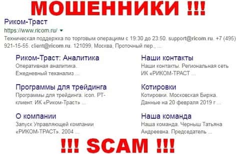 Интернет-ресурс мошенников Риком Траст