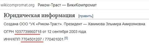 Закон же моральный нарушается в полную силу, но федеральным установам на это наплевать. Не удивительно, в наших сложных реалиях стоит полагаться только на себя и горстку независимых источников, которых в Сети сейчас осталось очень мало. Многие ресурсы, и, как видим, даже федеральные органы могут за деньги продать своё мнение и квалификацию, лишь бы потакать желанию жуликов Риком-Траст разводить честных людей. Один из независимых веб-порталов ВикиКомпромат орг представил нам еще и ИНН и ОГРН данной конторы. Если завидите совпадения, бегите со всех ног, вы только потеряете время и деньги.