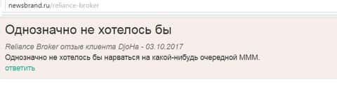 - Ни кем не регулируемый псевдоброкер Reliance Broker - обычный интернет-лохотрон