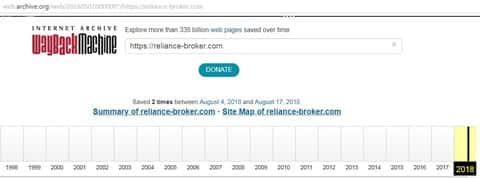 По данным авторитетной интернет-площадки web archive org, сайт конторы Reliance Broker нормально начал функционировать (принимать деньги от наивных пользователей сети Интернет) лишь в 2018 году. Поэтому о какой-либо серьезности данного брокера и речи не может идти.