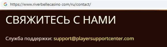 Лохотронщики RiverBelleCasino на своем официальном веб-ресурсе указывают адрес электронной почты, а именно: