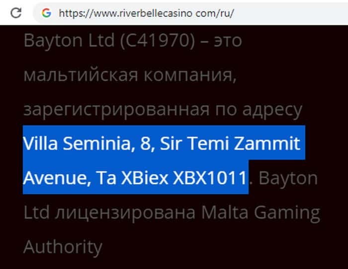 Главный офис данного интернет-лохотрона под названием River Belle Casino находится в оффшорном государстве Мальта.
