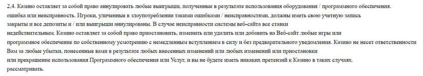 Согласно тому, что аферисты пишут в соглашении, контора Ривер Белле Казино не несет никакой ответственности за не полученную прибыль клиентом, а так же за возможные убытки.