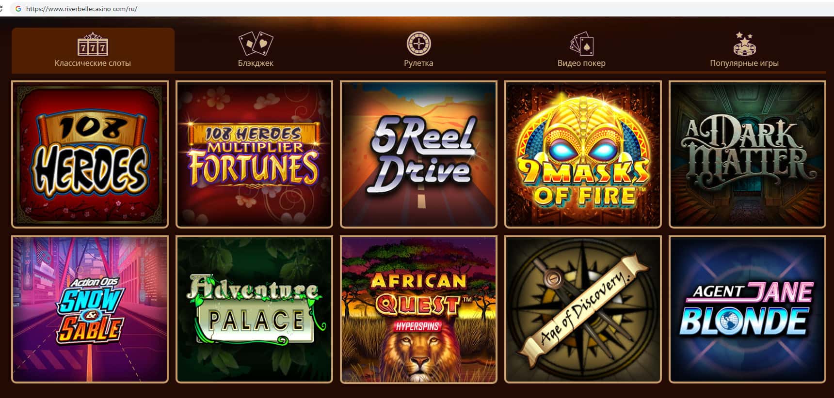 На сайте интернет-казино Ривер Белле Казино предоставлен перечень игр, где очень легко слить все свои деньги, поскольку вывести их будет невозможно.