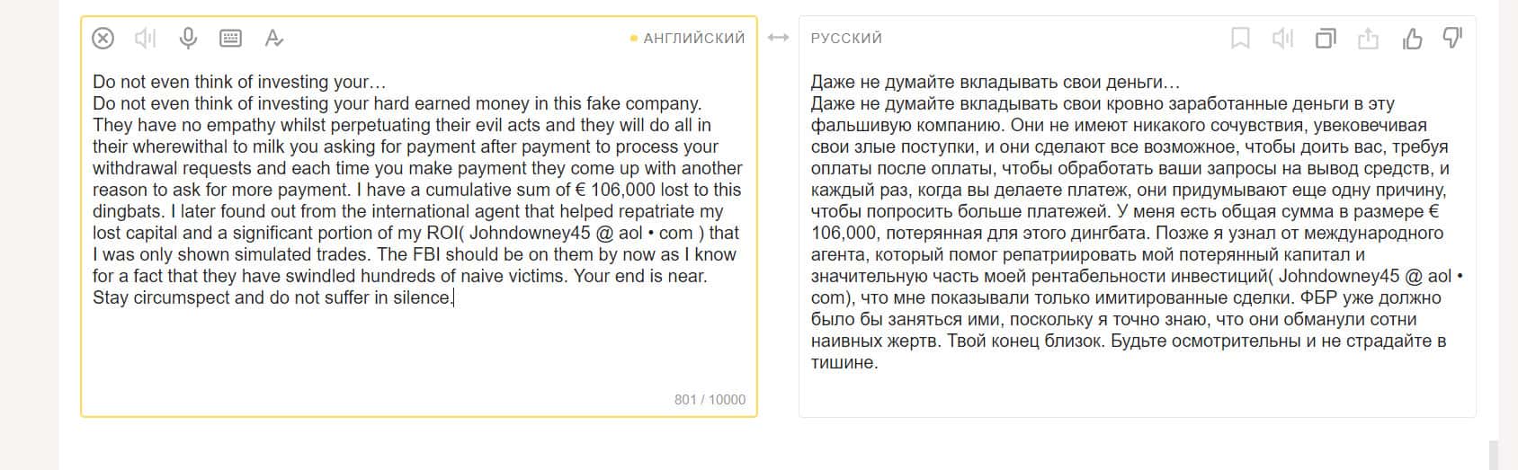 Также мужчина возмущен тем, что все общение с техподдержкой происходит только посредством писем. Это занимает долгое время. Нет возможности поговорить с живым человеком и быстро все выяснить. В результате трейдер решил больше не связываться с этими мошенниками.