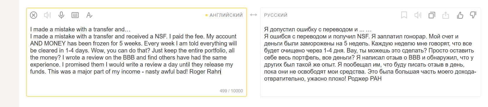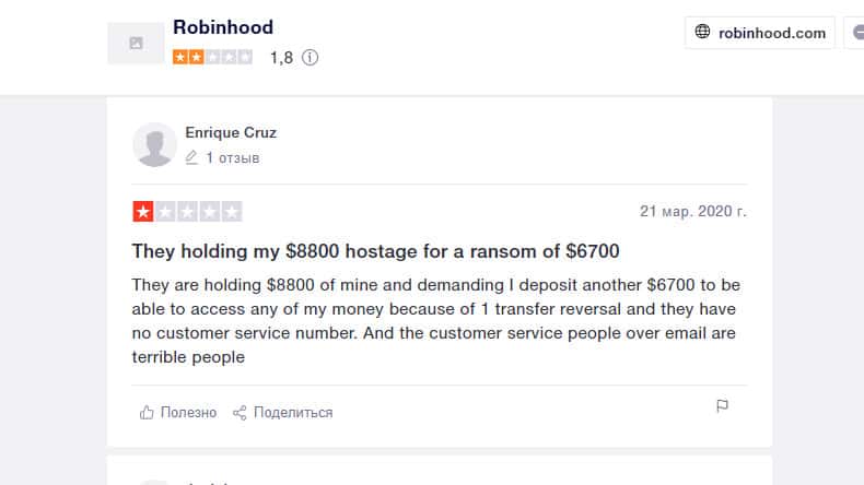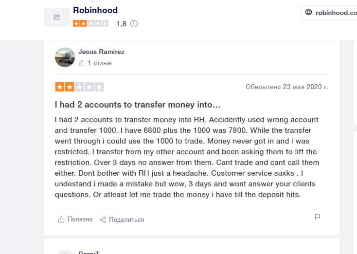 Рамирес сообщил на сайте Трастпилот о, том, что у компании Робин Гуд Брокер ужасная техподдержка, а сама организация жульничает. Он перевел на свой счет 1000 долларов, но деньги так и не поступили. Учетную запись заблокировали и Рамирес ничего не мог сделать. Он написал тикет в поддержку.