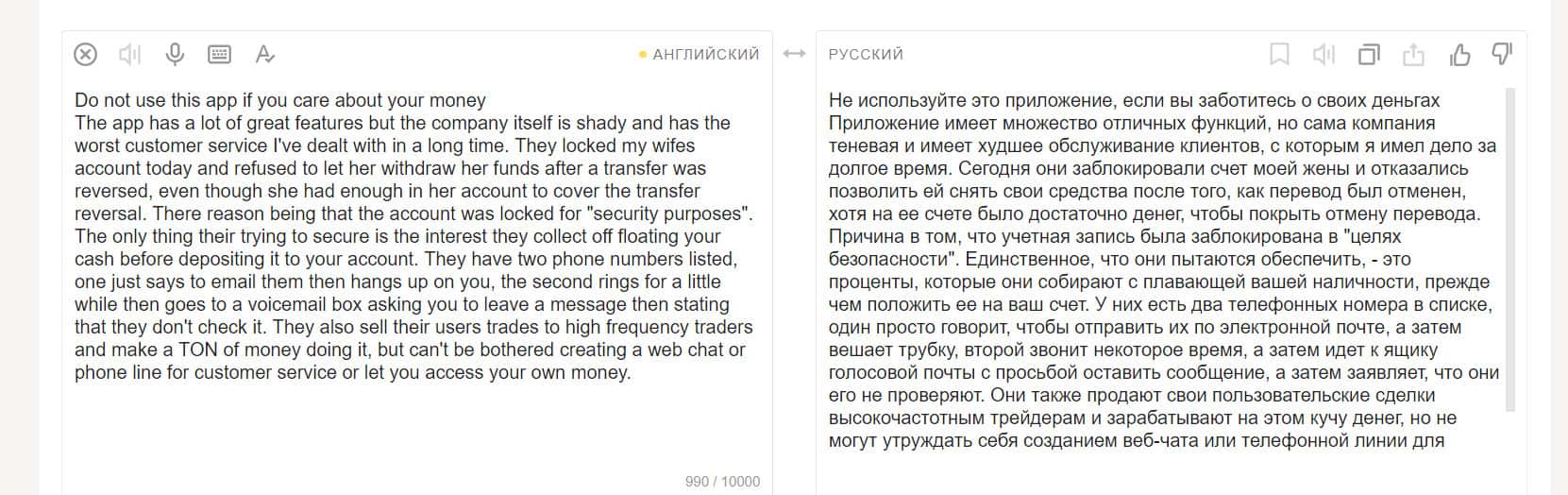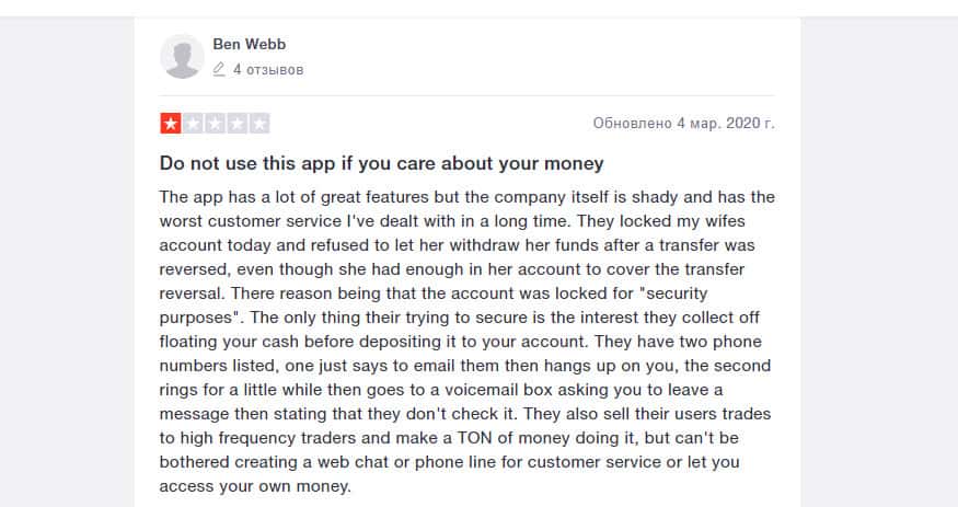 Проблемы начинаются с открытия счета. Они требуют много личной информации, которую пользователь должен им предоставить. Также приложение имеет запутанный интерфейс, отсутствие функций, которые есть у других брокеров. Стив отметил и плохую поддержку клиентов, о чем не раз писали другие клиенты.
