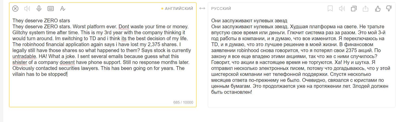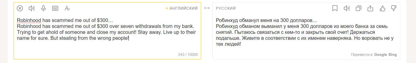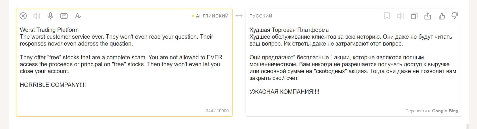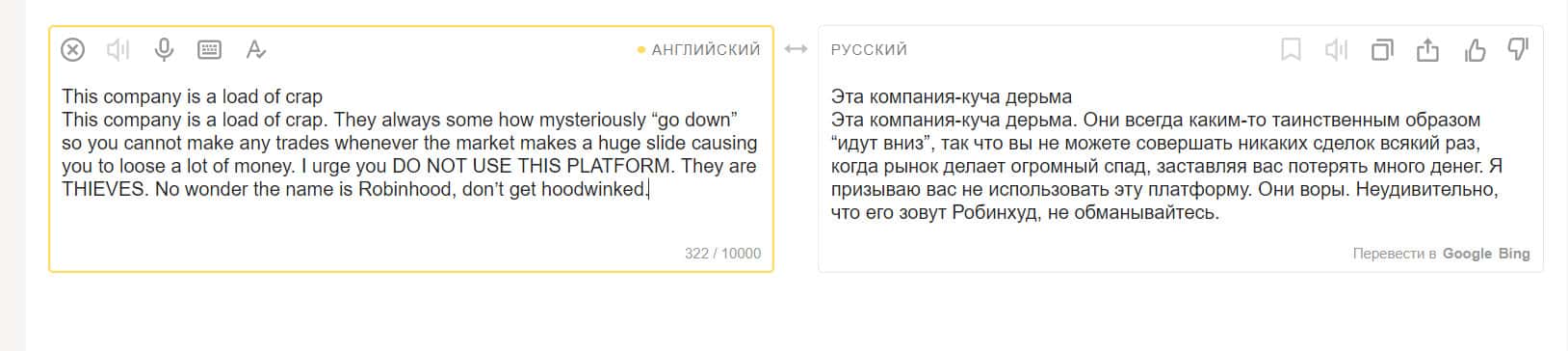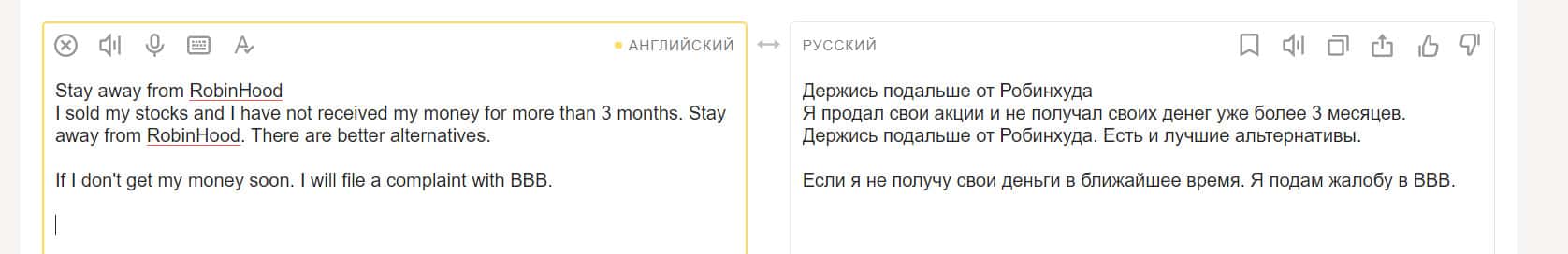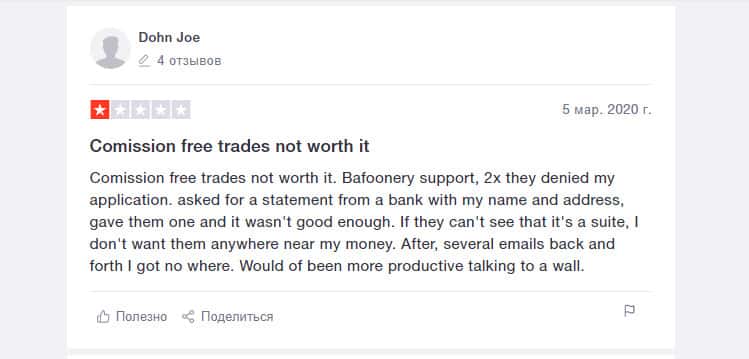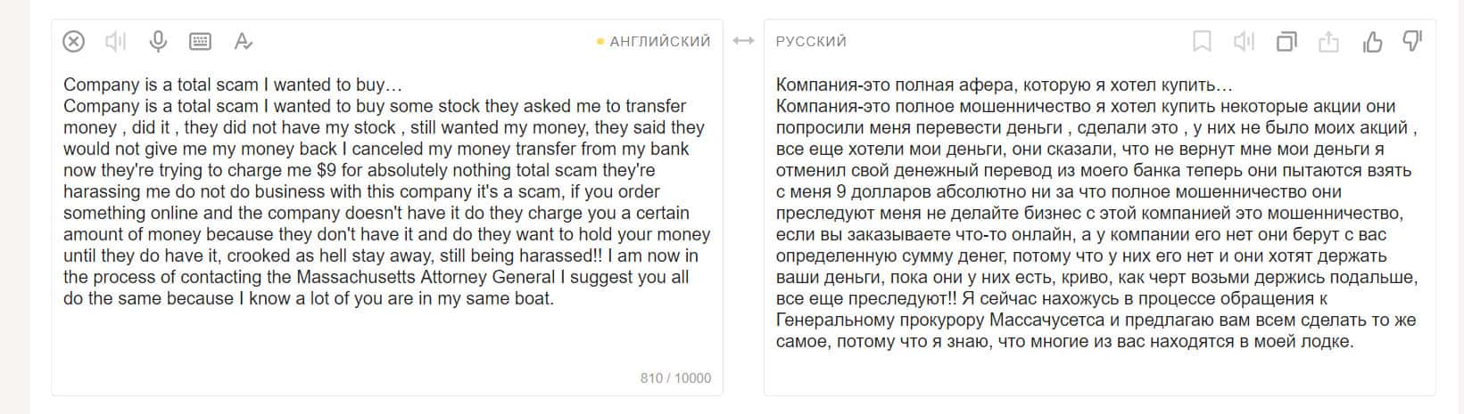 Еще один пользователь, вложившийся в покупку акций на площадке компании Робин Гуд Брокер, остался недовольным. Он считает, что это полное мошенничество. Контора предлагает людям продукты, якобы бесплатные, но это ловушка. Они не разрешат вам получить доступ к прибыли от продажи этих акций.