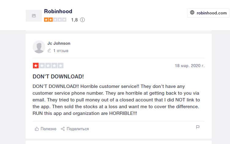 Затем сотрудники Робин Гуд Брокер пытались вытащить деньги Джонсона, которые были на счету, не связанном с приложением. После того, как они продали акции в убыток, клиенту пришло сообщение о том, что он должен покрыть разницу, т.е., вложить еще средства. Полный развод и лохотрон!