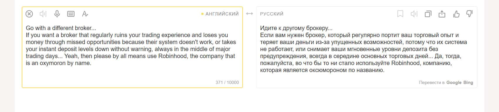 Трейдер назвал контору Робин Гуд Брокер далекой от профессионализма
