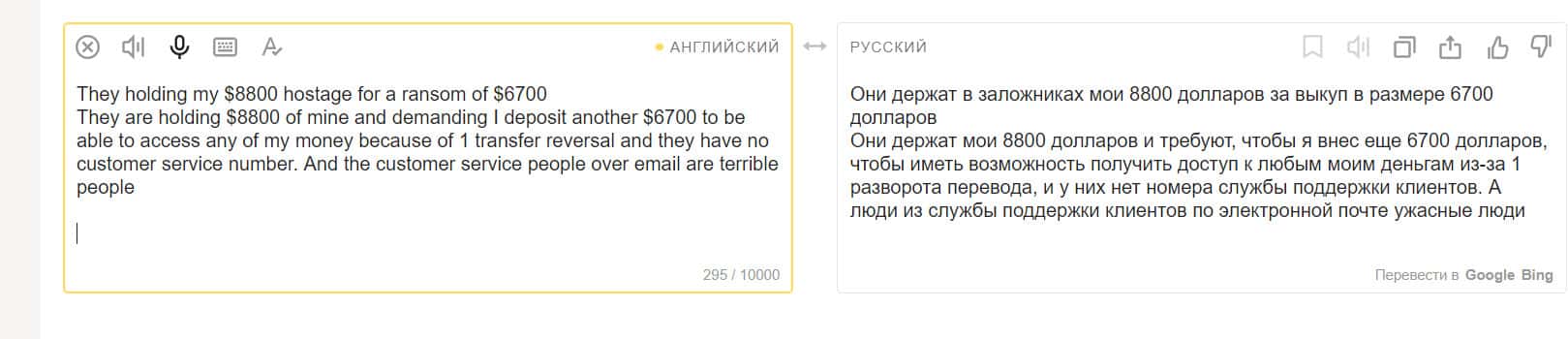 Его вопрос до сих пор не решен, и Кевин не может ни снять деньги, ни перевести на другой счет. Поддержка ничего не делает. В результате деньги клиента просто заморожены, и когда проблема решится, неизвестно.
