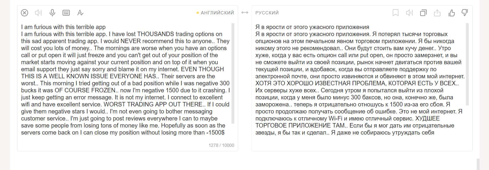 Брокера обвиняют в слишком запутанном интерфейсе, о чем уже писали многие клиенты. Александр на самом деле имел положительный баланс, но не смог разобраться в приложении. Отрицательные цифры, которые он увидел, были всего лишь отображением взаиморасчетов на бирже.