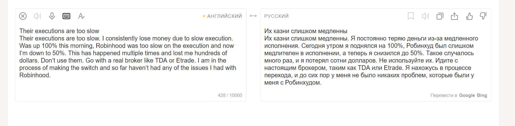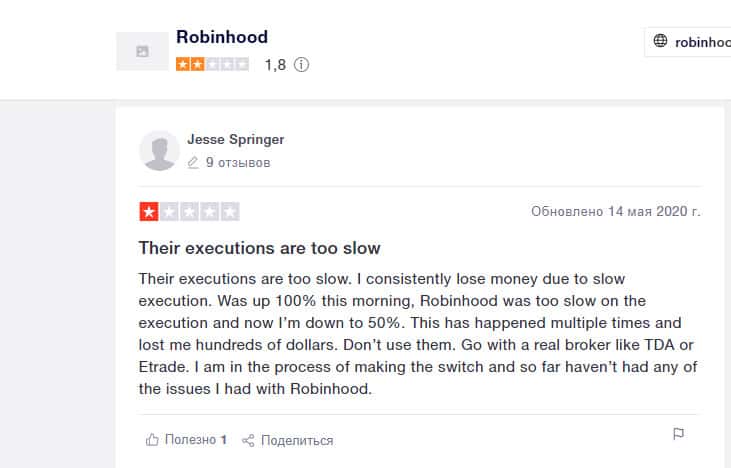 Уже не первый клиент конторы Робин Гуд Брокер заявляет, что их платформа слишком медленная. С другими брокерами таких проблем нет, и там можно спокойно работать. Джесси никому не советует использовать Робин Гуд Брокер для трейдинга.