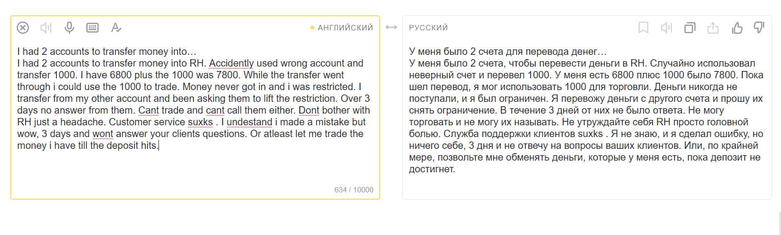 Клиент перевел еще денег и попросил администрацию снять ограничение и разблокировать его аккаунт. В течение трех дней не было никакого ответа от службы поддержки. Теперь он не знает, когда сможет воспользоваться своими деньгами.
