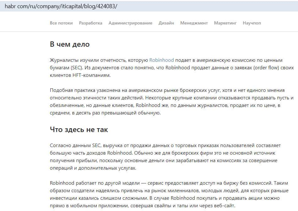 Зарубежное финансовое издание Сикинг Альфа опубликовало расследование, которое совершалось в отношении сервиса Робин Гуд Брокер. Выяснилось, что владельцы ресурса продают данные своих пользователей HFT-компаниям. Причем берут плату за это во много раз больше, чем другие брокеры.