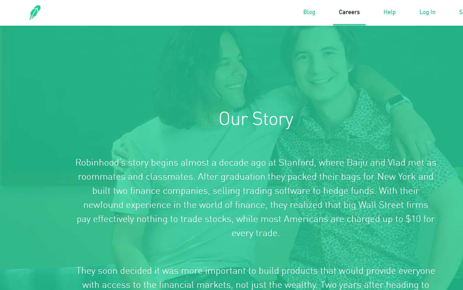 Здесь говорится, что Байджу и Влад познакомились как соседи по комнате и Одноклассники. После окончания университета они отправились в Нью-Йорк и построили две финансовые компании, продавая торговое программное обеспечение хедж-фондам. Затем они решили создать компанию, которая будет доступна для всех.