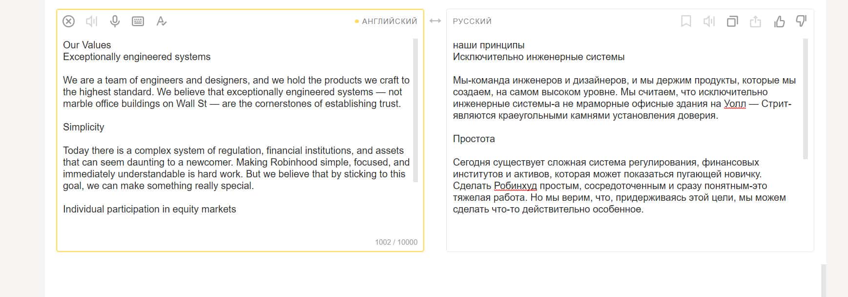 Клиентское соглашение и политика конфиденциальности компании Робин Гуд Брокер доступны пользователям только на английском языке. Чтобы перевести их, необходимо будет воспользоваться автоматическим переводчиком. Скорее всего, документы представляют собой стандартные соглашения.