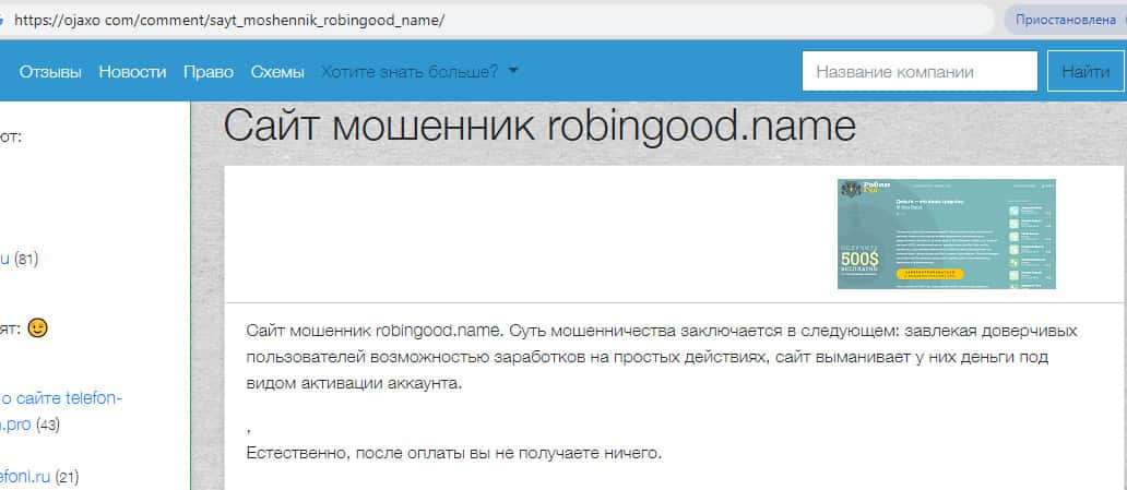 - Предупреждение о мошенниках в robingood name на портале ojaxo com