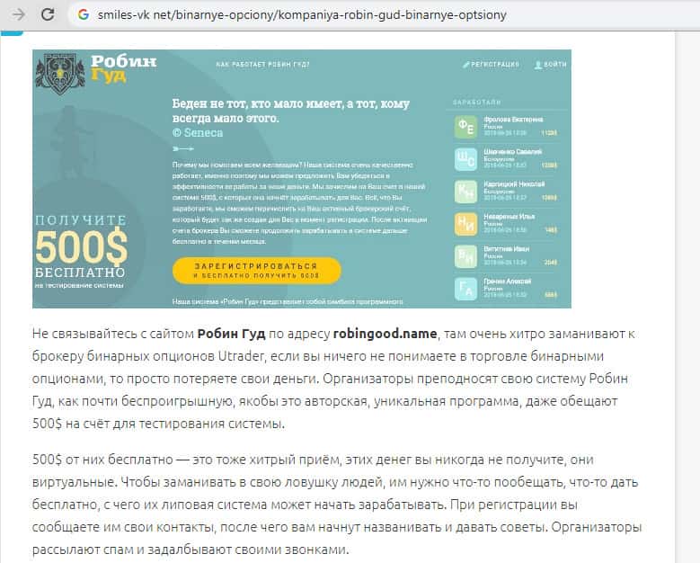 Очередное предупреждение о мошенниках Робингуд нейм на портале smiles-vk net