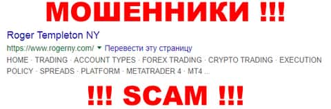 Роджер Темплтон - очередные мошенники сети интернет, которые менее года занимаются наглым разводом наивных пользователей сети интернет под предлогом торговли форекс и CFD, в ходе которых аферисты Roger Templeton NY сливают клиентам счет. В связи с этим иметь дело с лохотроном Роджер Темплтон мы определенно не рекомендуем !!!